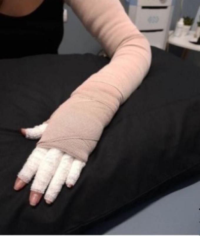 Πραγματοποιείται ειδική μέτρηση του ενδύματος από τον φυσικοθεραπευτή και επιλέγεται το κατάλληλο συμπιεστικό ένδυμα.
